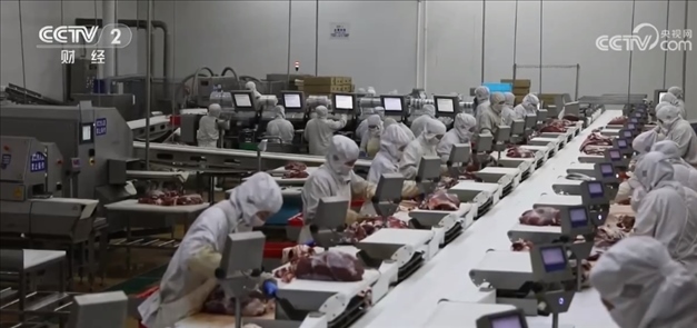 內(nèi)蒙古某公司生產(chǎn)負(fù)責(zé)人 仝林:每天有近100噸的產(chǎn)品發(fā)往上海、廣州等國(guó)內(nèi)各大中小城市及線上平臺(tái),產(chǎn)品主要是冰鮮牛肉和深加工產(chǎn)品。