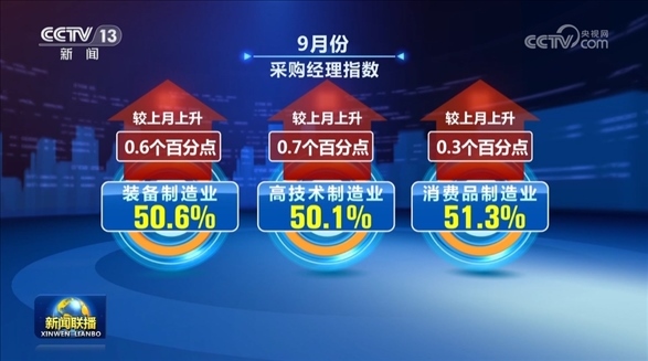 央視網(wǎng)消息(新聞聯(lián)播):中國(guó)物流與采購(gòu)聯(lián)合會(huì)、國(guó)家統(tǒng)計(jì)局服務(wù)業(yè)調(diào)查中心今天(9月30日)公布,9月份中國(guó)制造業(yè)采購(gòu)經(jīng)理指數(shù)重回50%以上的擴(kuò)張區(qū)間,經(jīng)濟(jì)恢復(fù)發(fā)展向好態(tài)勢(shì)明顯。