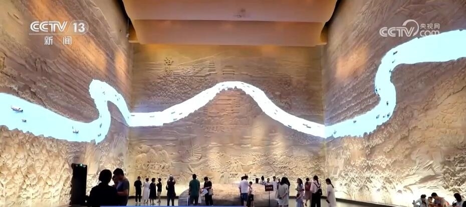 此外,不同于“文物+講解”的傳統(tǒng)展覽形式,博物館試圖將隋唐大運河整體“搬進”展廳。在這里,游客不僅能近距離觀察從古洛河河道中打撈出的“洛陽運河一號”古沉船,還能在浮雕墻前縱覽大運河脈絡全貌,更能走進精致復原的新潭碼頭,與歷史“對話”。