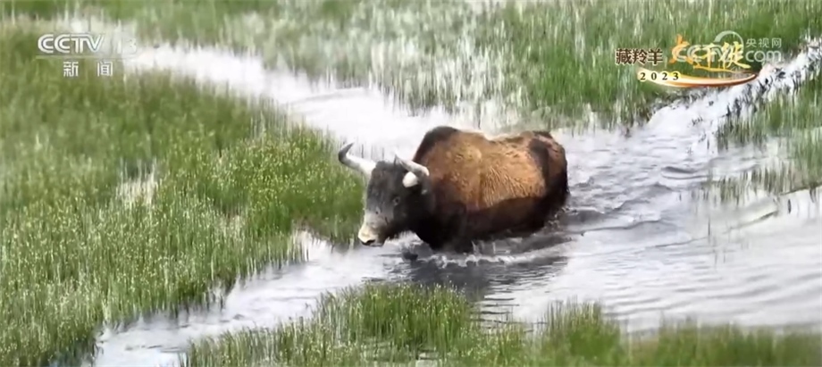 記者甚至拍到了成群的野牦牛在水中游嬉過(guò)河的畫面。高原的夏日里,趟過(guò)清涼的河水,想必也算是牛生的一樁美事。牛氣哄哄的野牦牛,此刻似乎多了幾分愜意,少了幾分“高原霸主”的威嚴(yán)。