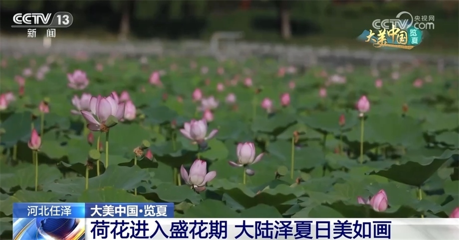跟隨鏡頭,我們來(lái)到河北邢臺(tái)的大陸澤國(guó)家濕地公園。炎炎夏日,這里碧波蕩漾、清風(fēng)拂柳,水汽繚繞的湖面偶有飛鳥(niǎo)掠過(guò)。此時(shí)節(jié),大陸澤也迎來(lái)了荷花的最佳觀賞期。風(fēng)起時(shí),荷田微漾、葉如綠波、花若紅云,不時(shí)有蜻蜓在荷間嬉戲,相映成趣。