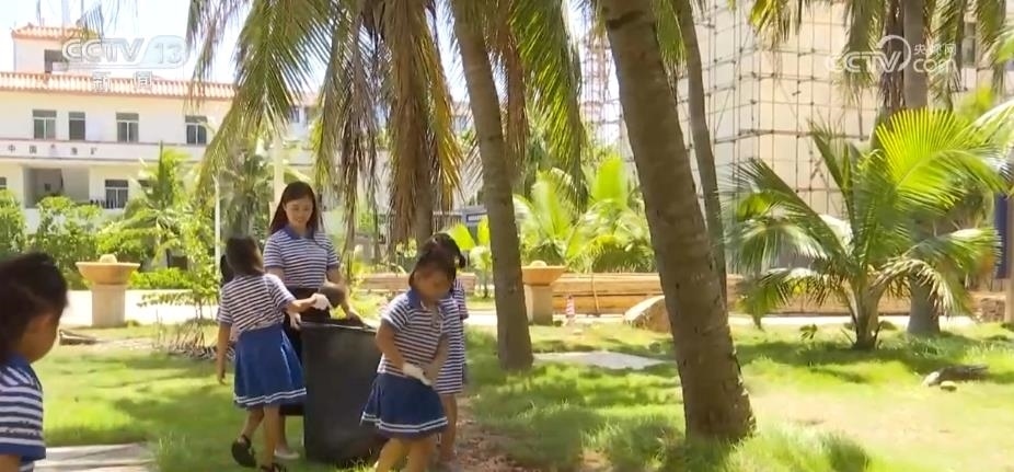 每周三的下午,海南三沙市永興學(xué)校的孩子們都會迎來他們的愛島日活動,這位帶著孩子們撿拾垃圾的老師就是吳泉穗。