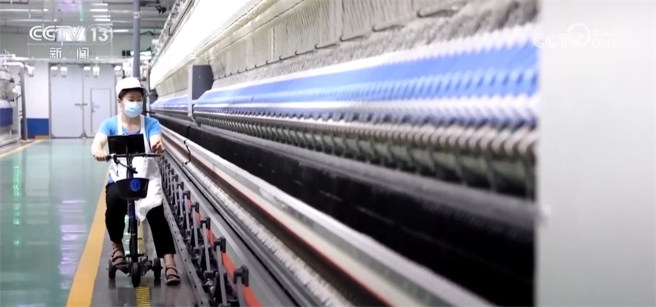 總臺(tái)央視記者 鄭怡哲:用于服裝的精梳棉紗,從棉花種植、軋花到加工成粗紗、細(xì)紗,再到成品運(yùn)輸、入庫(kù),全流程下來(lái),1千克棉紗的碳足跡值僅為4公斤左右的二氧化碳。在這條直徑不到0.1mm的紗線(xiàn)上,要滿(mǎn)足強(qiáng)度、透氣、舒適性等指標(biāo),同時(shí)也要兼顧節(jié)能、環(huán)保和碳排放。要在這條細(xì)細(xì)的紗線(xiàn)上做出如此大的文章,離不開(kāi)企業(yè)的高質(zhì)量發(fā)展和科技的支持。