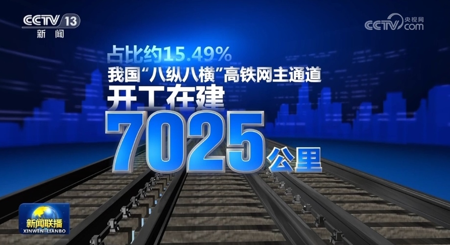 截至目前,我國“八縱八橫”高鐵網(wǎng)主通道已建成投產(chǎn)3.53萬公里,占比約77.83%;開工在建7025公里,占比約15.49%。