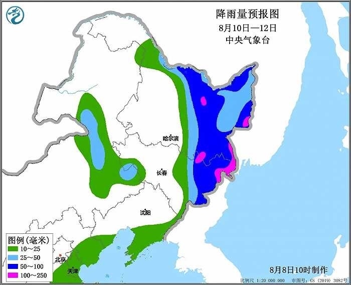 降雨預(yù)報:10-12日,受“卡努”影響,遼寧東部有中到大雨,吉林東部、黑龍江北部和中東部等地有大到暴雨,其中吉林東北部、黑龍江東南部等局地大暴雨;上述地區(qū)累積雨量30~60毫米,局地可達(dá)120~200毫米。最大小時雨強30~50毫米,局地可達(dá)60毫米以上。主要降雨時段為10日夜間至12日白天。
