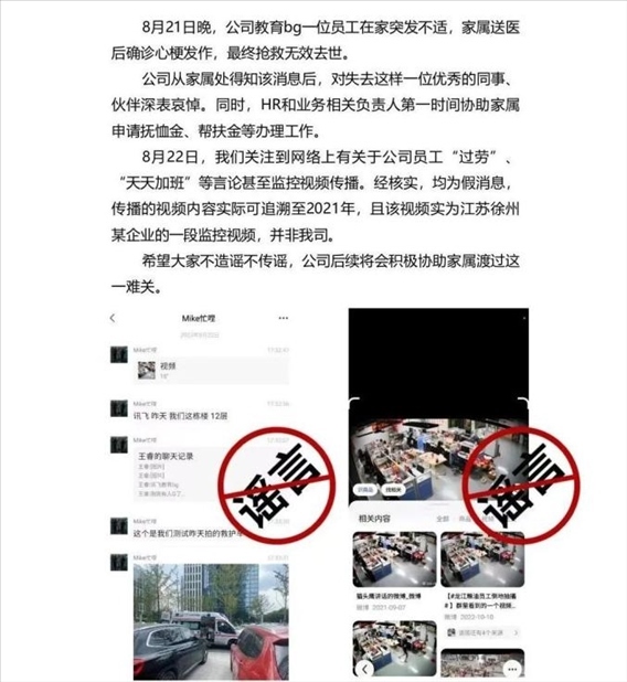·科大訊飛回應(yīng)網(wǎng)傳員工猝死:在家突發(fā)心梗,監(jiān)控視頻為假。