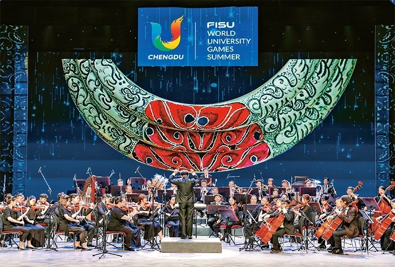 圖為2023年7月30日,音樂家在為參加成都大運(yùn)會的各代表團(tuán)成員演奏《瑤族舞曲》。 新華社記者 沈伯韓/攝