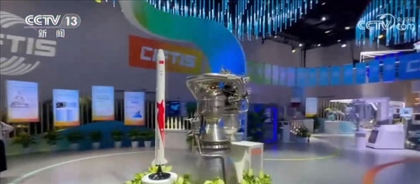 總臺(tái)記者 王豐:這片區(qū)域是綜合展的一個(gè)成就展的專題,這里集中展示了我國在服務(wù)業(yè)擴(kuò)大開放和服務(wù)貿(mào)易創(chuàng)新發(fā)展方面所取得的一系列成就。比如說這個(gè),這是我國民營企業(yè)藍(lán)箭航天自主研發(fā)的朱雀二號(hào)火箭,旁邊是自主研發(fā)的天鵲發(fā)動(dòng)機(jī)。今年7月12日,朱雀二號(hào)成功發(fā)射升空,是世界上首款將載荷送入預(yù)定軌道的液氧甲烷火箭。