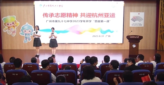 8月31日,廣州市第九十七中學開展以“傳承志愿精神、共迎杭州亞運”為主題的開學“思政第一課”。