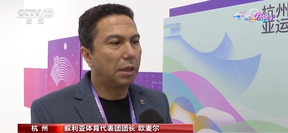 敘利亞運(yùn)動(dòng)員 艾哈邁德·古松:今年已經(jīng)是我第三次來(lái)中國(guó)比賽了。當(dāng)我走在街上,我可以看到很多人向我問(wèn)好,歡迎你來(lái)到這里。而且一旦我們需要幫助,很多人都來(lái)為我們提供幫助。來(lái)到這里就像回家一樣。而且哪里都是那么干凈美麗,場(chǎng)館也是我見(jiàn)過(guò)的最棒的場(chǎng)館,謝謝中國(guó)給亞洲帶來(lái)了一場(chǎng)如此精彩的亞運(yùn)會(huì)。