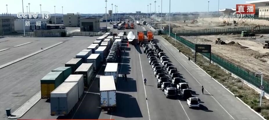 總臺(tái)記者 崔寧:我現(xiàn)在就在霍爾果斯公路口岸的貨運(yùn)通道。按照慣例,每年的10月1日—3日,中哈兩國(guó)之間的公路口岸會(huì)閉關(guān)三天,今天(10月4日)是開關(guān)后的首個(gè)通行日。我們看這邊,各種“中國(guó)制造”的車輛陸續(xù)通關(guān)出境,前往中亞各國(guó)了。除了眼前繁忙的通關(guān)場(chǎng)景,不遠(yuǎn)處,口岸的路面拓寬工程也傳遞出了這里的發(fā)展活力。