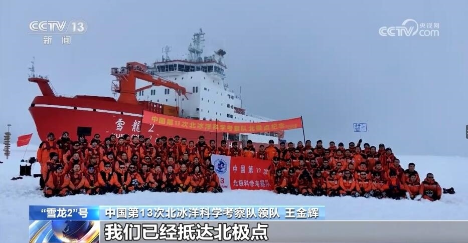 中國第13次北冰洋科學(xué)考察隊(duì)領(lǐng)隊(duì) 王金輝:中國第13次北冰洋科學(xué)考察隊(duì)隊(duì)員們,很高興地告訴大家,我們已經(jīng)抵達(dá)北極點(diǎn)。