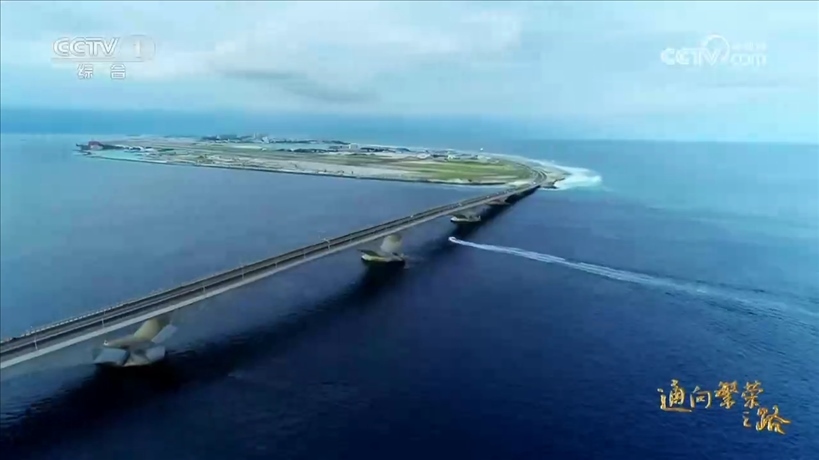 印度洋上,600多名建設(shè)者,不斷探索新技術(shù)方案,一個(gè)個(gè)世界級(jí)難題相繼被攻克。歷經(jīng)974天,架起了這個(gè)國(guó)家第一座跨海大橋,馬爾代夫人民夢(mèng)想成真。