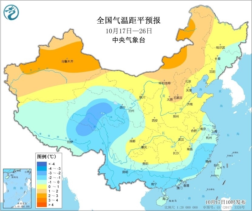 央視網(wǎng)消息:中央氣象臺10月17日10時發(fā)布中期天氣預報。