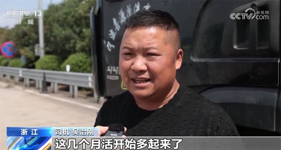司機(jī) 吳治剛:我是義烏跑寧波港專線的,8月份跑了不到30趟,9月份還可以,跑了39趟。這幾個(gè)月活多起來了,越來越多了。