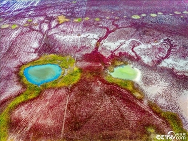 2023年11月13日,初冬時(shí)節(jié),江蘇鹽城東臺(tái)條子泥濕地,成片的蒿子草造就的“紅海灘”,與遷徙的候鳥、棲息的麋鹿以及潮汐形成的地貌,勾勒出一幅幅濕地的自然生態(tài)美圖。