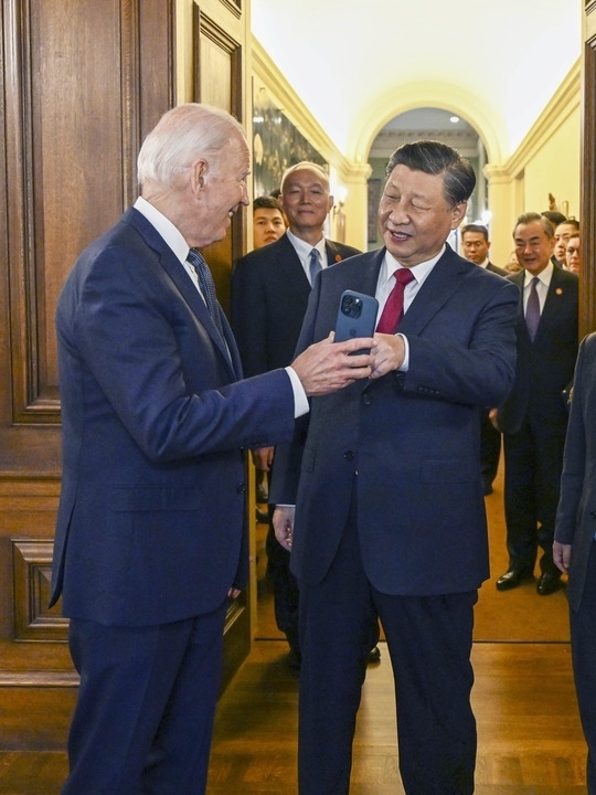 當?shù)貢r間11月15日中午,美國舊金山郊外的斐洛里莊園,習近平主席結(jié)束同美國總統(tǒng)拜登的晤談,出席拜登總統(tǒng)舉行的宴會。拜登在手機上展示1985年習近平在擔任正定縣委書記時訪問舊金山的一張照片。