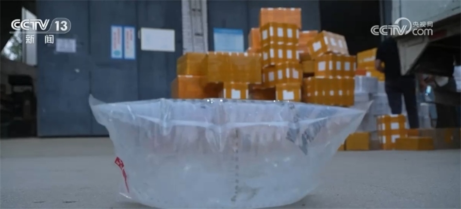 四個(gè)月后,向寨村破解了錦鯉“活體運(yùn)輸”的瓶頸:把錦鯉裝進(jìn)特殊材料制成的密封袋子內(nèi),充進(jìn)氧氣后再進(jìn)行熱合封口,新的包裝方式將破損率降低到百分之五以內(nèi),即便成年人站在上面,袋子也不會(huì)破損。