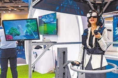 第二十一屆中國(guó)(蘇州)電子信息博覽會(huì)日前在蘇州工業(yè)園區(qū)舉辦。圖為觀眾在博覽會(huì)上體驗(yàn)5G+元宇宙游戲。張 鋒攝(人民視覺(jué))