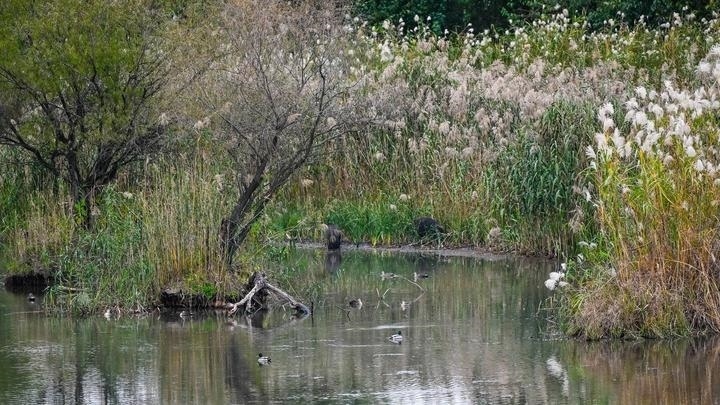 野豬和水鳥生活在長江新濟洲(11月13日攝)。記者 季春鵬 攝