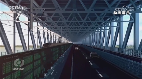 而說(shuō)常泰長(zhǎng)江大橋是個(gè)超級(jí)工程,不僅因?yàn)樗小翱缍茸畲蟆钡倪@個(gè)頭銜,更因?yàn)樗鼡碛卸喾N功能,在這座上下兩層的橋上,上層為六車(chē)道高速公路,下層為兩線鐵路和四車(chē)道普通公路,這也是長(zhǎng)江上首座“三位一體”的跨江大橋。那么,多種功能的設(shè)計(jì)又是出于什么樣的考慮呢?