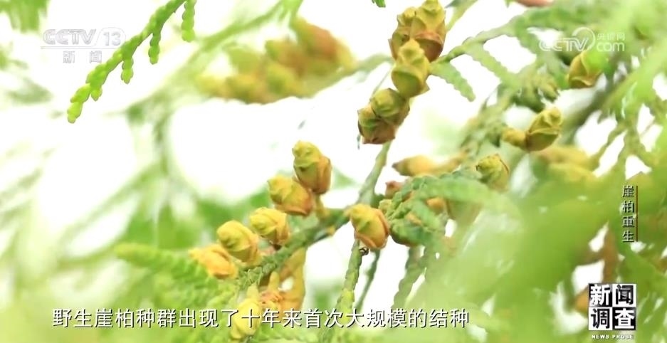 中國林科院森林生態(tài)環(huán)保所二級(jí)研究員 郭泉水:自從2012年崖柏群體結(jié)實(shí)以來,間隔十年,發(fā)現(xiàn)的規(guī)模比較大的一次崖柏結(jié)實(shí),應(yīng)該對(duì)于我們雪寶山來說是一件大事。把我們能采到的一些種子收集起來,然后在育苗的溫室,大棚里面育出小苗,再把小苗回歸到崖柏群落里面。