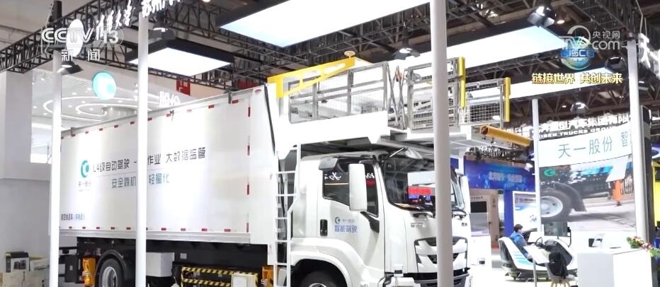 總臺(tái)央視記者 張歆:在本屆鏈博會(huì)上,我們也看到了許多智能專用車。大家可以看到在我身旁就是一臺(tái)智能航空食品專用車,這臺(tái)重量達(dá)到21噸左右的“大塊頭”裝了許多個(gè)雷達(dá),通過(guò)5G的算法就能夠?qū)崿F(xiàn)無(wú)人駕駛和無(wú)人作業(yè)。
