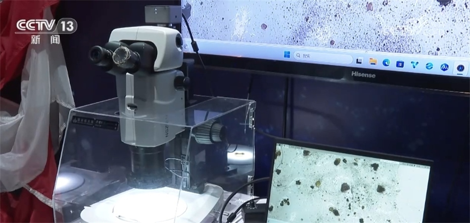總臺記者 劉冰清:我身邊就是此次展覽的亮點之一,由嫦娥五號在2020年帶回來的月球土壤,這也是月壤首次在澳門亮相。通過顯微裝置近距離觀測月壤,可以讓澳門民眾感受到我國航天技術(shù)的偉大成就。