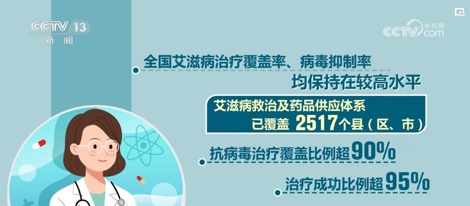全國(guó)艾滋病治療覆蓋率、病毒抑制率均保持在較高水平。艾滋病救治及藥品供應(yīng)體系已覆蓋2517個(gè)縣(區(qū)、市),抗病毒治療覆蓋比例超90%,治療成功比例超95%。