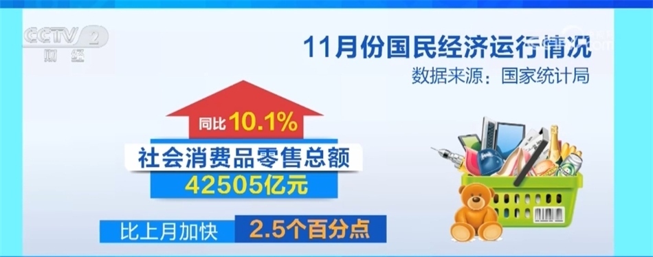 從消費(fèi)看,出行類的商品銷售改善,服務(wù)消費(fèi)潛力繼續(xù)釋放,市場(chǎng)銷售增勢(shì)良好。11月份社會(huì)消費(fèi)品零售總額同比增長(zhǎng)10.1%,比上月加快2.5個(gè)百分點(diǎn),其中限額以上單位汽車類商品零售額增長(zhǎng)14.7%,帶動(dòng)作用明顯。