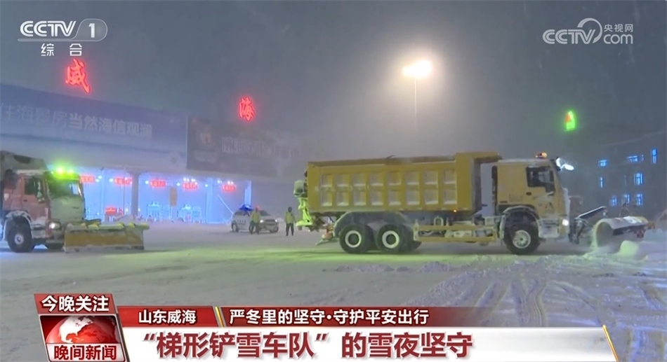 從16日開始,山東威海迎來強(qiáng)降雪天氣,晚上七點(diǎn)多,威海收費(fèi)站負(fù)責(zé)高速公路養(yǎng)護(hù)的張輝,正帶著工友們用鏟車和裝載車緊張地進(jìn)行道路積雪的清除工作。張輝告訴記者,所有養(yǎng)護(hù)人員凌晨三點(diǎn)就起床開始清雪。梯形車隊出發(fā)后,張輝又組織人員對拋錨的車輛進(jìn)行救援,為滯留的貨車司機(jī)發(fā)放食品。