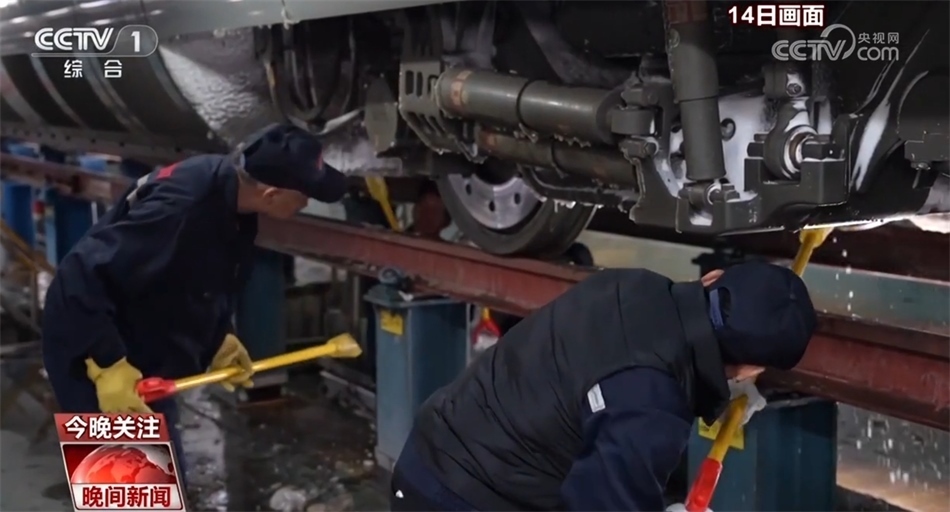 先除冰,再檢測,列車檢修員們化身雪夜除冰人,一列車下來最快要半個小時,如果趕上冰層厚的列車則需要三個小時。
