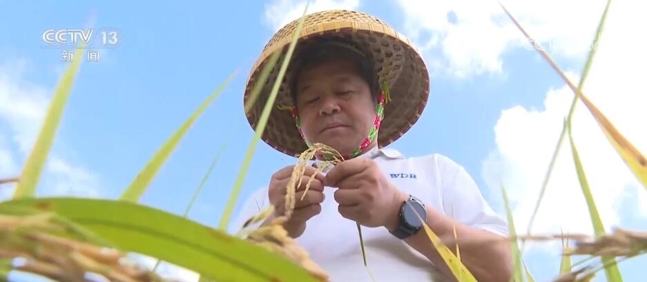 畫面中這位正在觀察稻谷的人叫余新橋,是上海市農(nóng)業(yè)科學(xué)院研究員,利用南繁的土地專研水稻育種工作已經(jīng)有40年了。每年冬天,余新橋都會(huì)帶團(tuán)隊(duì)到這里進(jìn)行育種栽培,他所在的育種團(tuán)隊(duì)以前是研究傳統(tǒng)水稻的,后來轉(zhuǎn)而研究節(jié)水抗旱稻。