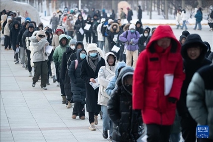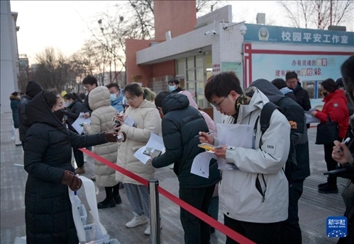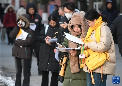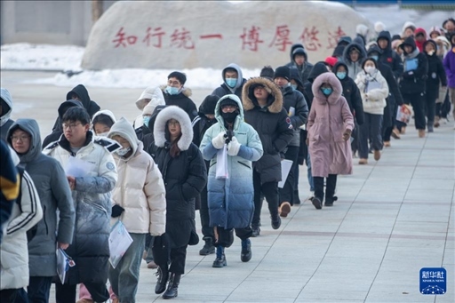 12月23日,在黑龍江省哈爾濱市,考生在哈爾濱理工大學(xué)考點(diǎn)排隊進(jìn)入考場。