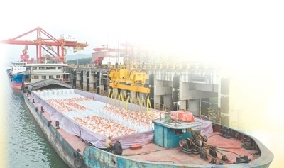 “龍頭港是糧食到達(dá)涪陵后的陸運(yùn)起點(diǎn)。憑借涪陵區(qū)完備的高速公路網(wǎng)和鐵路專(zhuān)線(xiàn),到港糧食基本能在24小時(shí)內(nèi)到達(dá)市內(nèi)的其他區(qū)縣。”涪陵區(qū)綜合經(jīng)濟(jì)研究中心副主任周康龍介紹,涪陵擁有5條過(guò)境高速公路,通車(chē)?yán)锍踢_(dá)175公里,鐵路通車(chē)?yán)锍踢_(dá)207公里。去年,涪陵向重慶中心城區(qū)、周邊區(qū)縣、相鄰省份提供原糧9萬(wàn)噸、成品糧油32萬(wàn)噸、豆粕15萬(wàn)噸、飼料35萬(wàn)噸。