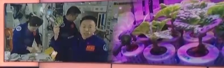 除了航天醫(yī)學(xué)實驗,空間植物栽培實驗也伴隨了航天員的空間站生活,神十七航天員目前在太空種植蔬果所使用的“太空菜園”裝置,是由中國航天員科研訓(xùn)練中心新設(shè)計的第二代空間植物栽培裝置。2022年,神十四航天員蔡旭哲第一次在中國空間站培植出了生菜,并與隊友們分享了勞動成果。