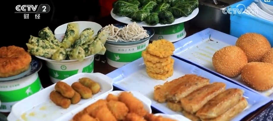 在古街上,一杯熱氣騰騰的綠茶,配上當?shù)氐碾u子馃、肉沉子,是很多游客特地趕來吃的新年第一份早餐。店主說今天光一個早上豆?jié){就賣了500多碗。
