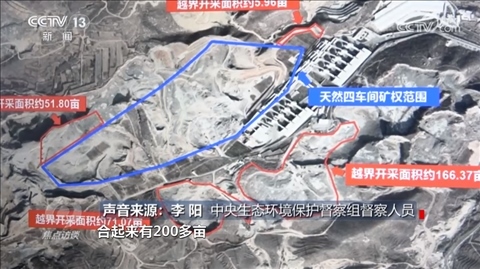 中央生態(tài)環(huán)境保護(hù)督察組督察人員李陽(yáng):“越界開(kāi)采了,合起來(lái)有200多畝?!?/p>