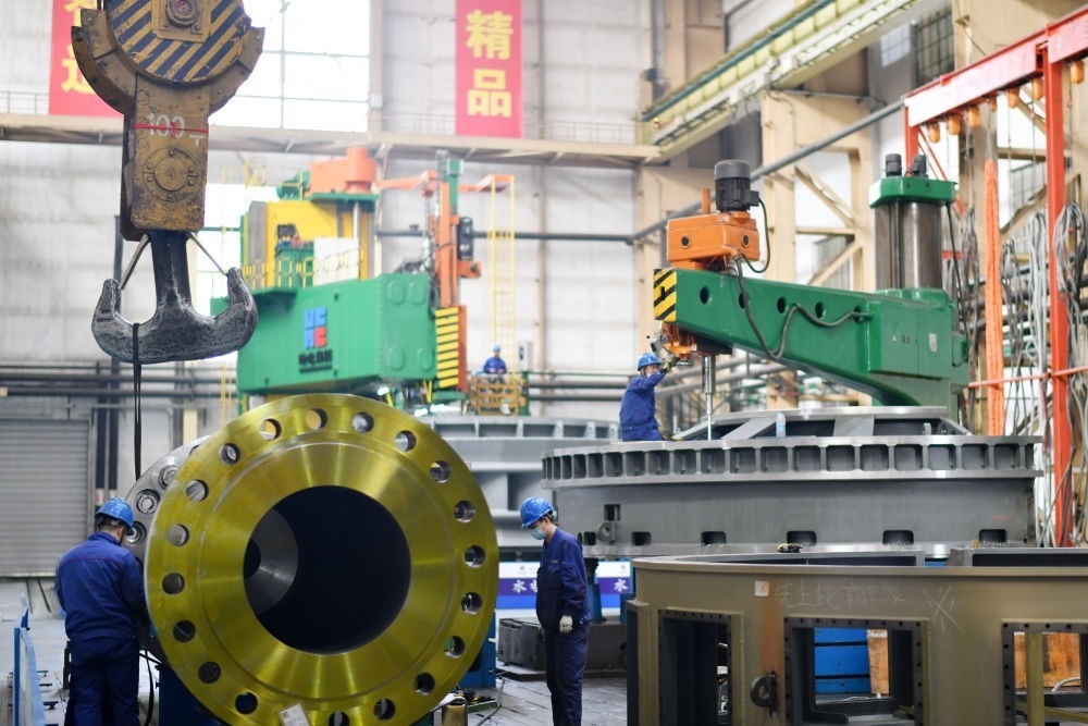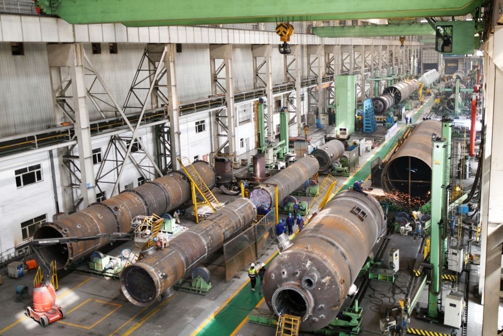 工人在哈電集團(tuán)哈爾濱鍋爐廠有限責(zé)任公司生產(chǎn)車(chē)間作業(yè)(2023年4月12日攝)。新華社記者 王建威 攝