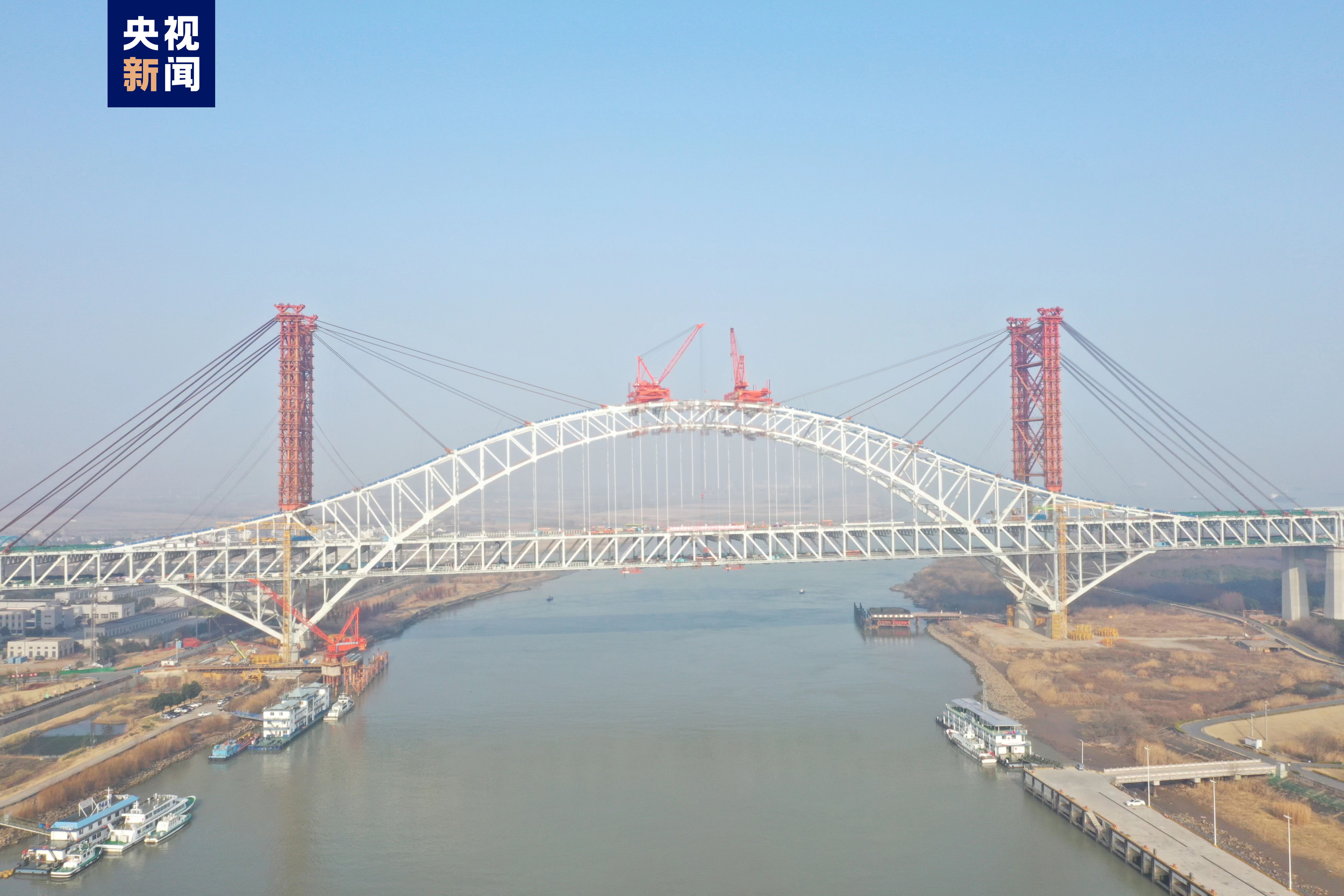 常泰長(zhǎng)江大橋由主航道橋、錄安洲專用航道橋、錄安洲非通航孔橋、天星洲專用航道橋以及兩岸南北側(cè)引橋組成。其中,錄安洲專用航道橋主跨388米,是世界最大跨度公鐵兩用鋼桁拱橋。航道橋鋼材用量約4萬(wàn)噸,高強(qiáng)螺栓用量約47萬(wàn)套,歷時(shí)21個(gè)月建成。