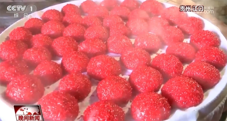 年貨寄托了人們對(duì)來年的美好期盼。貴州銅仁江口縣的“紅粑粑”寓意幸福美滿,每年春節(jié)前,當(dāng)?shù)厝硕紩?huì)齊聚一堂,制作圓圓的“紅粑粑”等待過年的到來。
