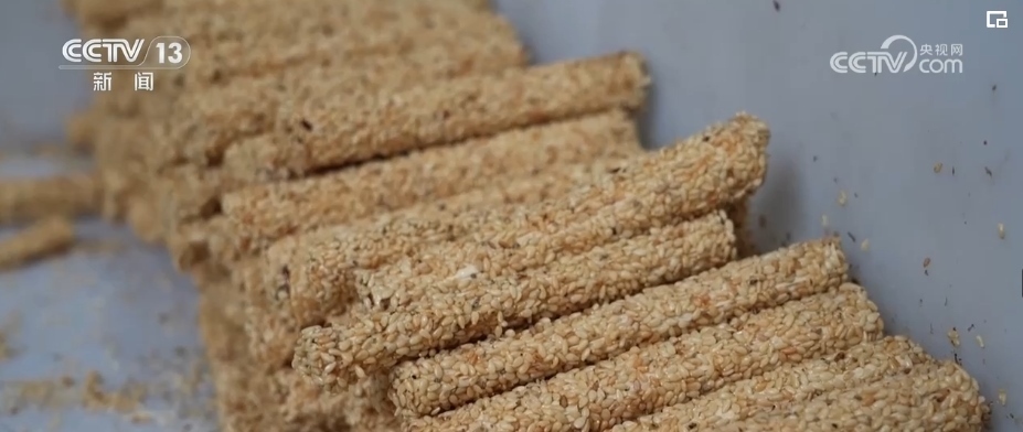 在山西芮城,制作芝麻糖已有上百年的歷史。在一家芝麻糖加工車間,早晨7點多,制糖師傅們就開始制作糖稀,熬制好的糖稀在鍋里不斷翻滾,隨后的工序更加關(guān)鍵,拉糖、切糖要一氣呵成,芝麻糖才能色香味俱佳。