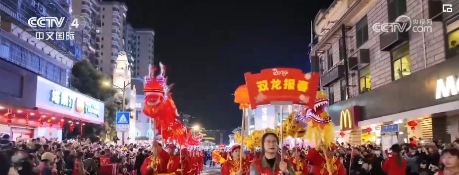 這幾天在廈門同安,盛大的傳統(tǒng)踩街民俗活動與古城燈會同步開啟。舞龍、舞獅、腰鼓隊等巡游隊伍從同安城中心出發(fā),表演者們身著盛裝、手持道具,先后經(jīng)過同安鐘樓、同安縣衙舊址等地,與市民游客熱情互動。