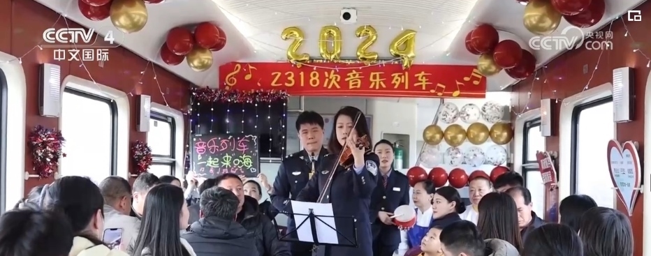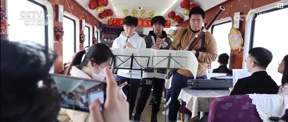 隨著春節(jié)臨近,在外務工的游子們紛紛踏上了回家的旅途。在青島北開往成都西Z318次列車上,悅耳歡快旋律響起,列車工作人員邀請3位學生旅客,為大家演奏了悠揚歡快的樂曲。
