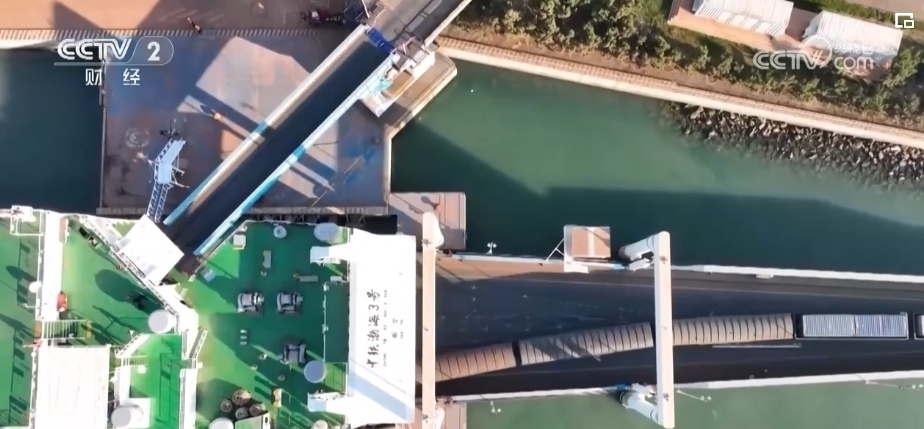 中鐵渤海3號渡船全長182.6米、寬24.8米,滿載排水量可達(dá)16229噸,單航次可載運一列50節(jié)貨物列車和50輛載重汽車、25輛小汽車以及716名旅客。