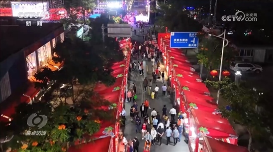 今年春節(jié)期間,配合“村VA”的排球比賽,當地在排球館旁邊設置了年貨節(jié),展銷當地的特色商品??赐瓯荣悂沓悦朗?,讓游客們直呼過癮。