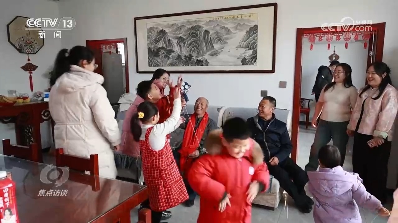 除夕,大紅的“福”字透著節(jié)日的喜氣。在河北省武邑縣的大劉莊村,83歲的郭順義老人家里格外熱鬧,四世同堂的5個(gè)家庭,15口人團(tuán)聚在一起過年,這是這個(gè)大家庭一年中最重要的日子。