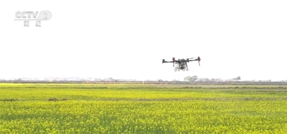 在江西省南昌市新建區(qū)的這個(gè)稻油輪作示范基地,金黃的油菜花競(jìng)相開放。花海上空,無人機(jī)在專業(yè)人員的操控下,均勻地將肥料和農(nóng)藥噴撒至油菜田間,為油菜提供生長(zhǎng)的能量和養(yǎng)分,抑制病菌繁殖,提高油菜結(jié)莢率及產(chǎn)量。