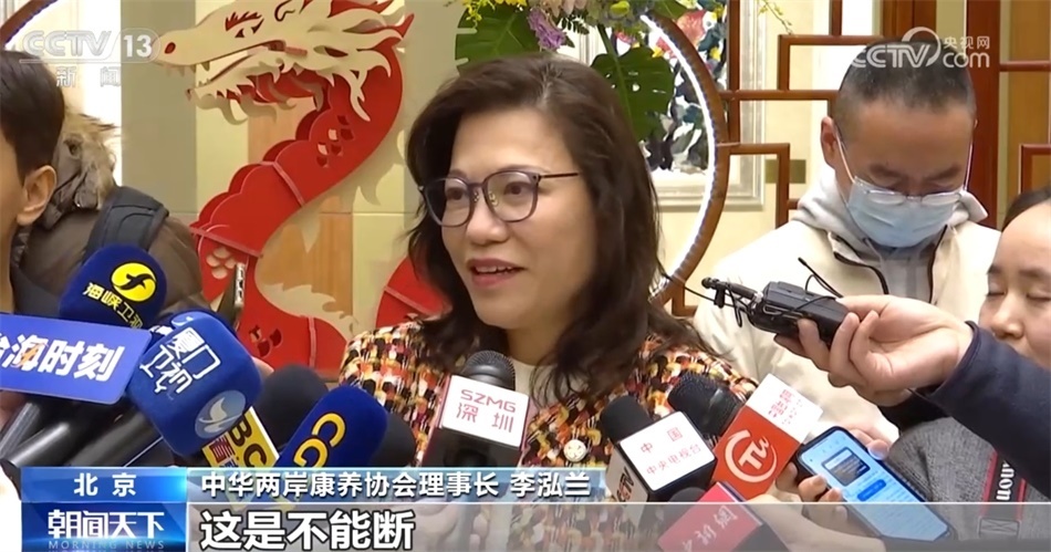 此外,中華兩岸康養(yǎng)協(xié)會理事長李泓蘭稱:“我覺得兩岸的融合發(fā)展已經(jīng)你中有我、我中有你,在各個產(chǎn)業(yè)鏈都是如此,就如同我們的血脈親緣關系一樣,不是說斷就能斷的,不能斷,就像兩岸的交流也不能斷,要靠我們這一代代代相傳、生生不息地傳接下去?!?/p>