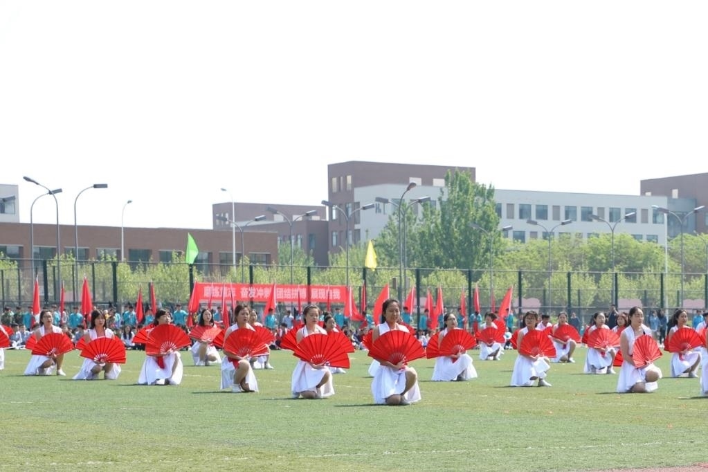 2019年4月26日,承德應(yīng)用技術(shù)職業(yè)學(xué)院學(xué)生在天津中德應(yīng)用技術(shù)大學(xué)運(yùn)動(dòng)會(huì)開(kāi)幕式上表演。新華社發(fā)